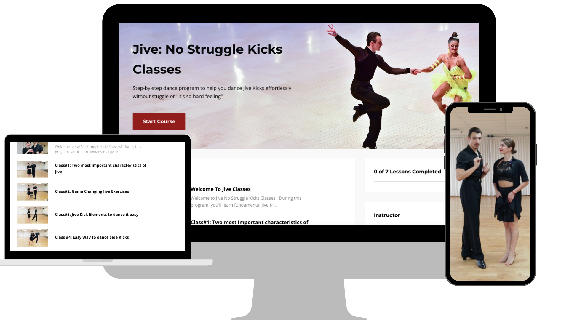 The Step-By-Step Mini-Course (Pre-recorded lessons) gives you all you need to know to dance Kicks easily and have fun.